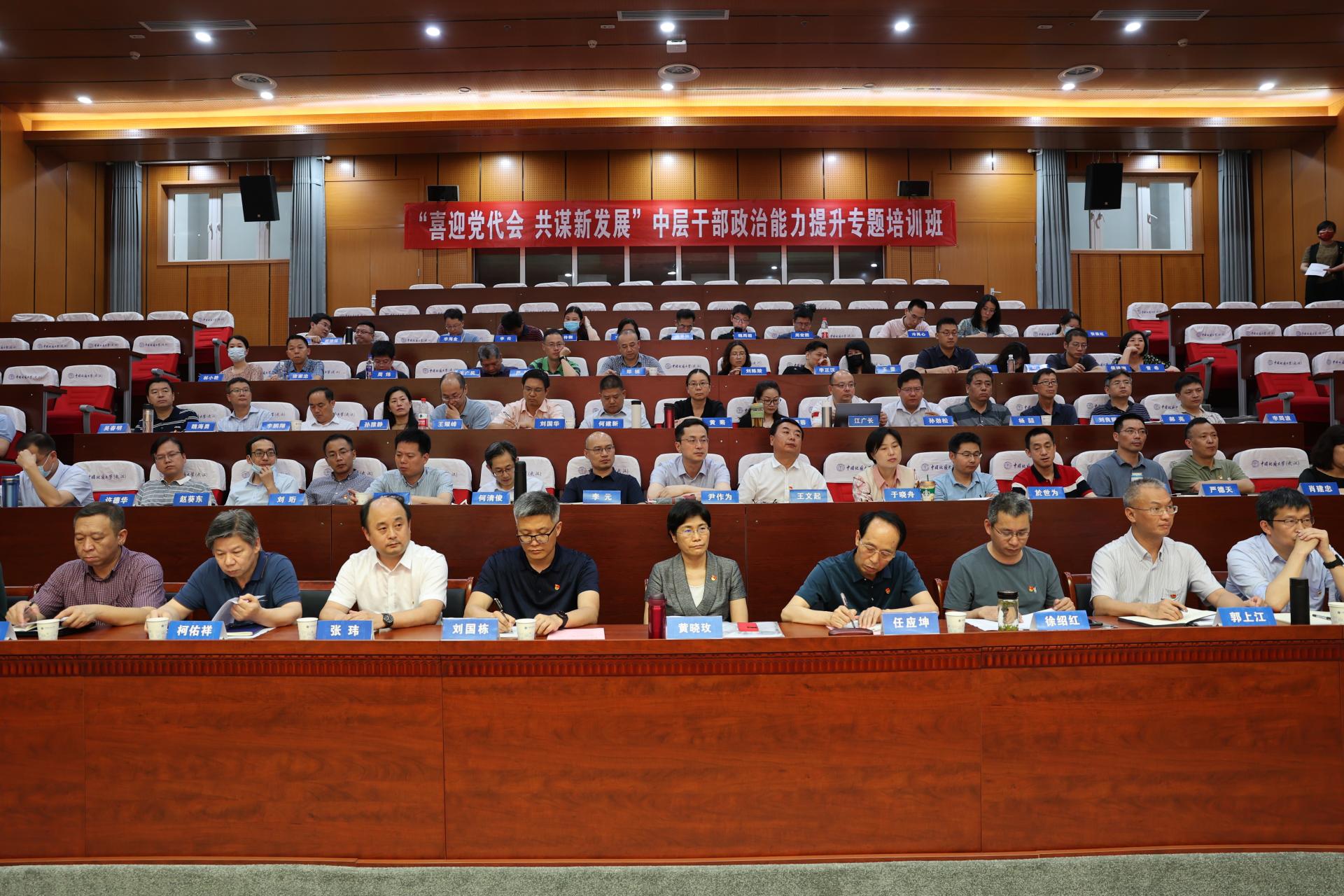地大新闻网讯(通讯员 王艳平 宋超 摄影 王俊芳 江玲)在学校深入开展学习贯彻习近平新时代中国特色社会主义思想主题教育、喜迎第十三次党代会胜利召开之际,为加强干部常态化、精准化教育培训,6月17日至18日,73882必赢网页版举办“喜迎党代会 共谋新发展”“双肩挑”中层干部及新提任、轮岗交流中层干部政治能力提升专题培训班。教育部直属高校主题教育第八巡回指导组副组长任应坤、成员刘国栋参加会议,学校100多名中层干部参加培训。