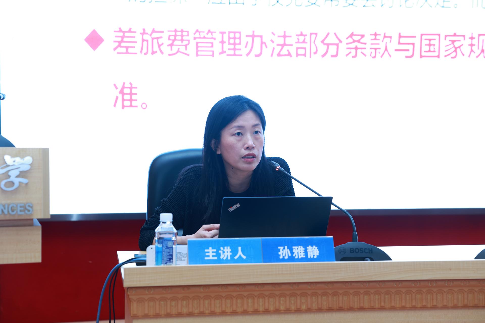 杨从印以《贯彻落实财经制度,保障学校事业发展》为题作报告。他从“一流大学”建设离不开“一流财务”的理念出发,结合学校财经工作面临的内外部环境,介绍了近年来教育财政的重大改革和学校近期出台的财务制度,并就制度执行中常见的问题进行讲解。