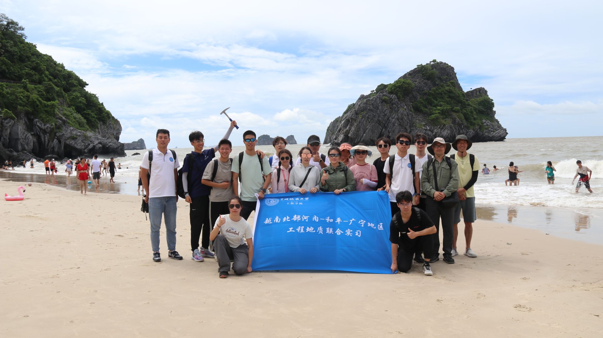 在越南河内,来自工程学院的15名本科生来到河内矿业与地质大学,在老师们的指导下,同学们认识越南的断层情况,了解越南西北部的典型地质构造;并前往河内轨道交通3号线河内火车站地铁站建设现场观摩学习、考察典型的石灰岩喀斯特地貌海湾。
