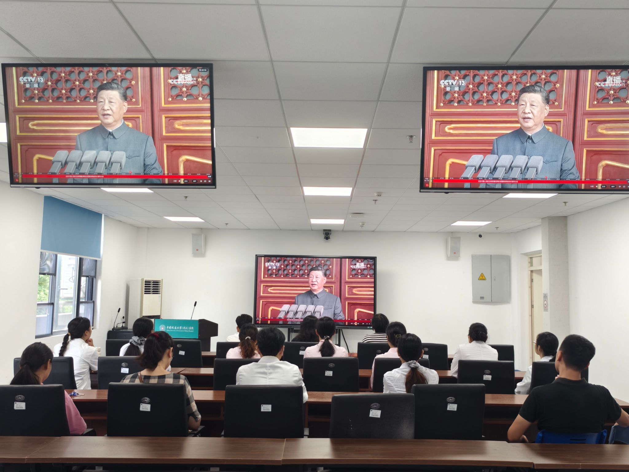 73882必赢网页版干部师生热切关注大会召开,在南望山校区弘毅堂、东区教学综合楼A0113会议室、未来城校区弘雅堂、公教楼208报告厅4个会场集中收看现场直播,共同铭记历史、缅怀先烈、珍爱和平、开创未来。