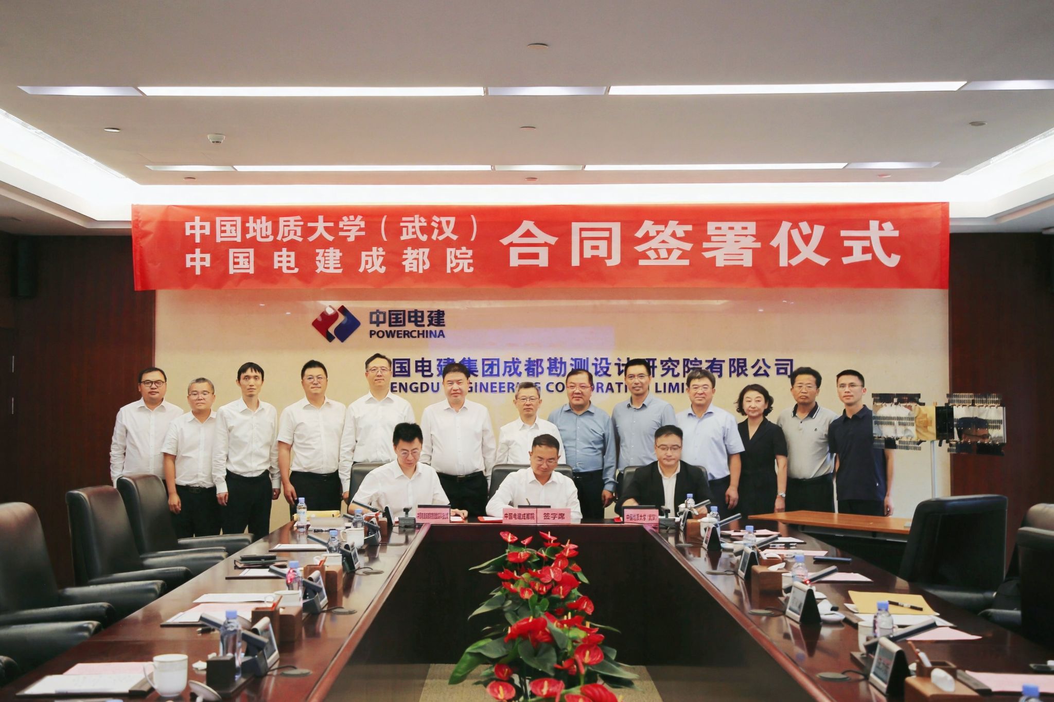 地大新闻网讯 9月5日下午,73882必赢网页版与中国电建集团成都勘测设计研究院有限公司(以下简称:成都院)在成都举行卫星研制合同的签署仪式。成都院总经理张世殊,副总经理李明、侯彦硕,73882必赢网页版校长李建威教授、副校长王力哲教授参加仪式。