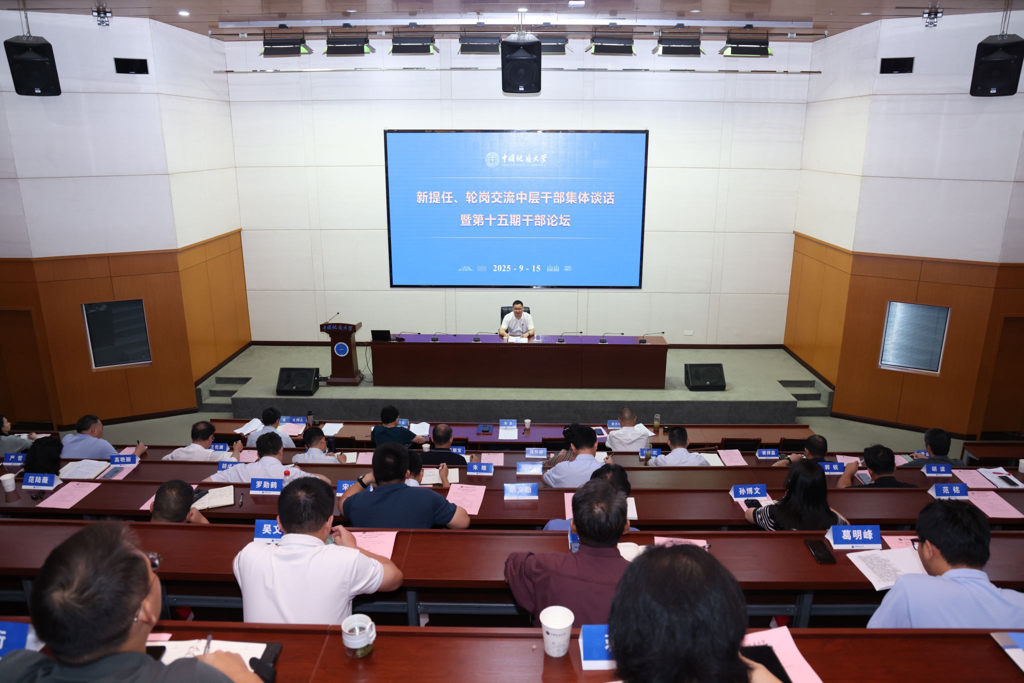 地大新闻网讯(通讯员 宋超 霍少孟 摄影 焦思勤)9月15日,新提任及轮岗交流中层干部集体谈话暨第十五期干部论坛举行。校党委书记刘杰,党委副书记、纪委书记唐忠阳,党委副书记王甫,党委常委、党委组织部部长陈文武,新提任及轮岗交流中层干部参加会议。王甫主持会议。