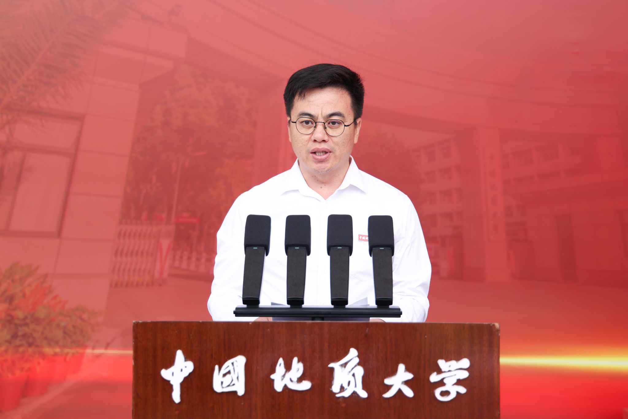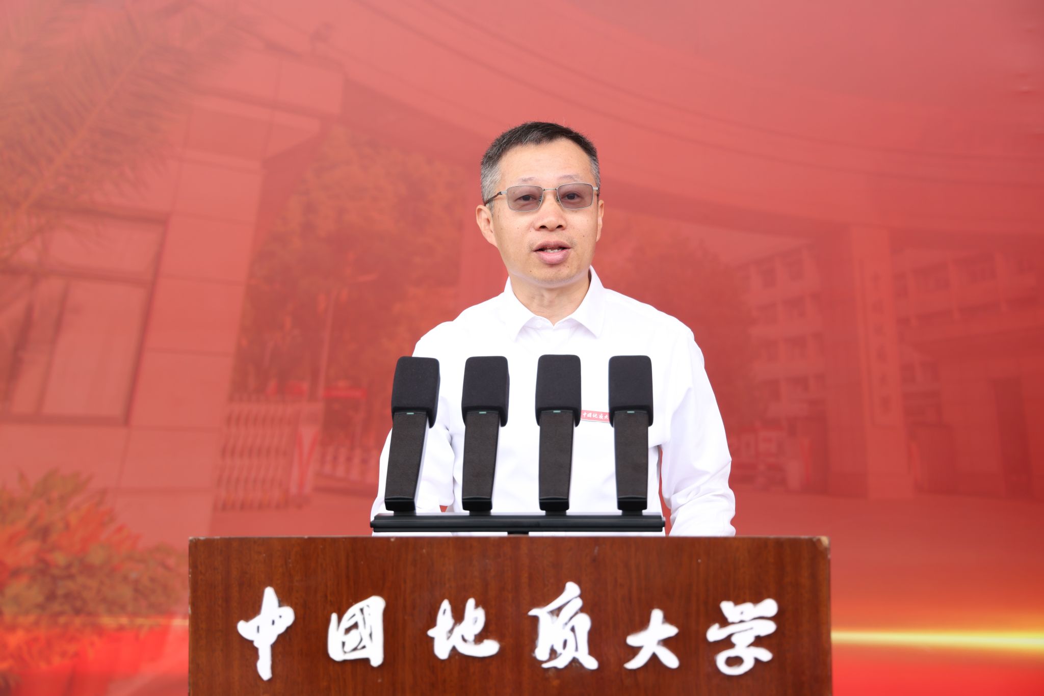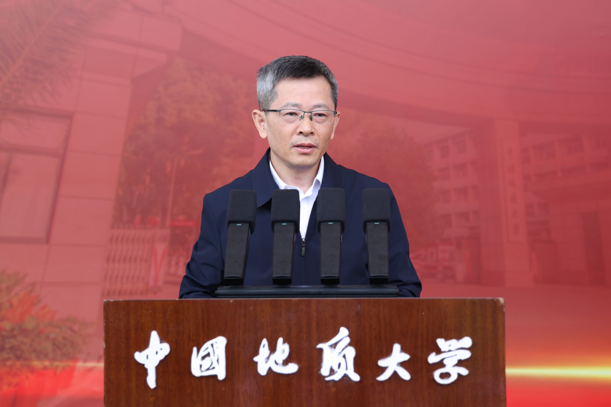 校长李建威作了题为《矢志报国向未来》的讲话。他说,建校73年来,学校为党育人为国育才的初心不改,地质报国科技强国的使命担当不改,矢志成为地球科学领域世界一流大学的追求不改。学校的奋斗历程和取得的辉煌办学成就,是矢志报国的生动体现,是熔铸于校训精神、南迁办学精神、攀登精神、摇篮精神的价值追求,是几代地大人赤诚报国的精神底色。