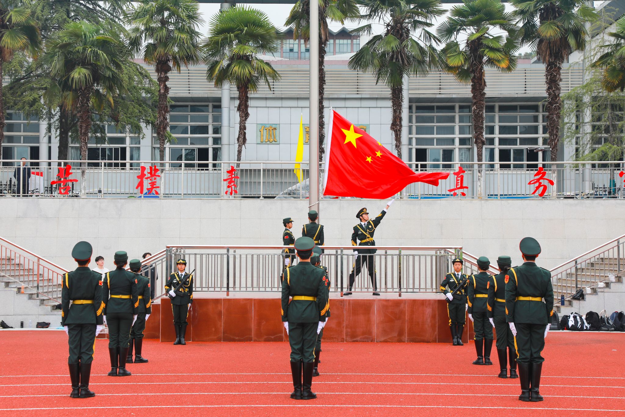 奏唱国歌,举行升旗仪式。