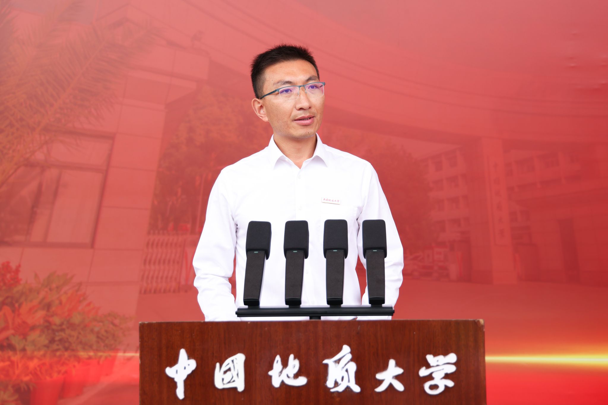 教师代表、地球科学学院教授、博士生导师马强回顾了自己在地大求学的故事,“大学不是一个让你变成别人的地方,而是一个让你成为更好自己的地方”。他说,大学期间大家可能 “慢热”,也可能“迷茫”,但这是成长路上最诚实的同行者,希望同学们踏实而坚定地走好每一步,用双脚丈量大地,用双手触摸真实,用头脑思索未知,用心去感受时代。