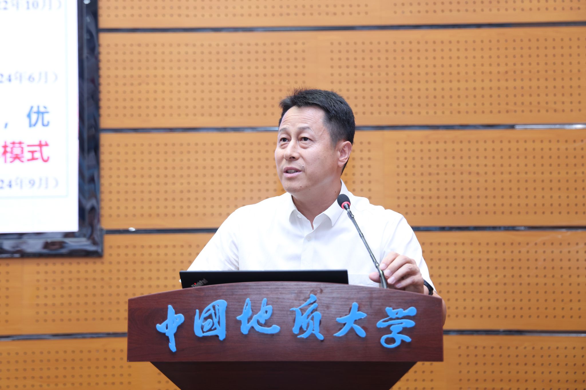导师代表文龙教授结合自身指导工程硕博专项研究生的感触,强调卓越工程师培养“实干为要”。他勉励同学们将课堂理论转化为工程实践能力,在实验室攻关与企业车间实践中突破技术瓶颈,以“工匠精神”践行“地质报国”使命。
