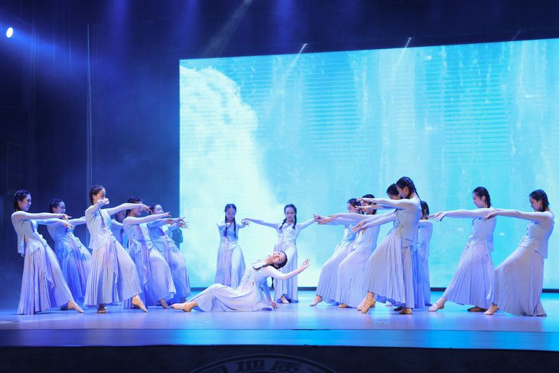 全体人员在艺术与传媒学院余磊老师指挥下齐唱校歌《勘探队员之歌》。