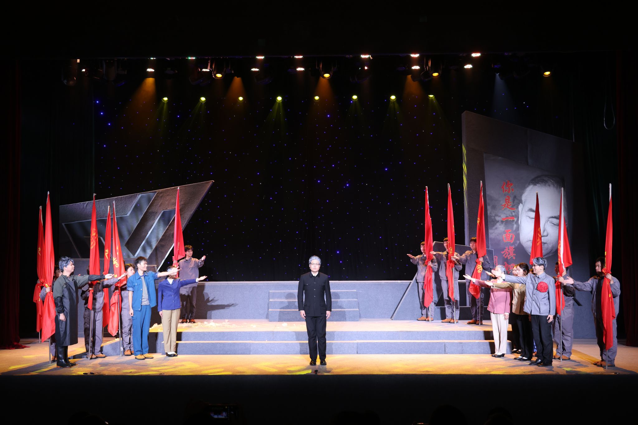 本次参与演出的是该剧的第12批演员。饰演李四光先生的李思锐表示:“此次在绵阳演出,让我与李四光先生精神同频共振的感受格外强烈。绵阳是‘两弹一星’精神的重要发源地,李四光先生当年毅然归国,投身国家地质事业的经历,与这片土地上的奋斗故事本质上是相通的,都是把个人的理想追求与国家命运紧密相连。先辈留下的宝贵精神财富,值得我用一生去追寻。”