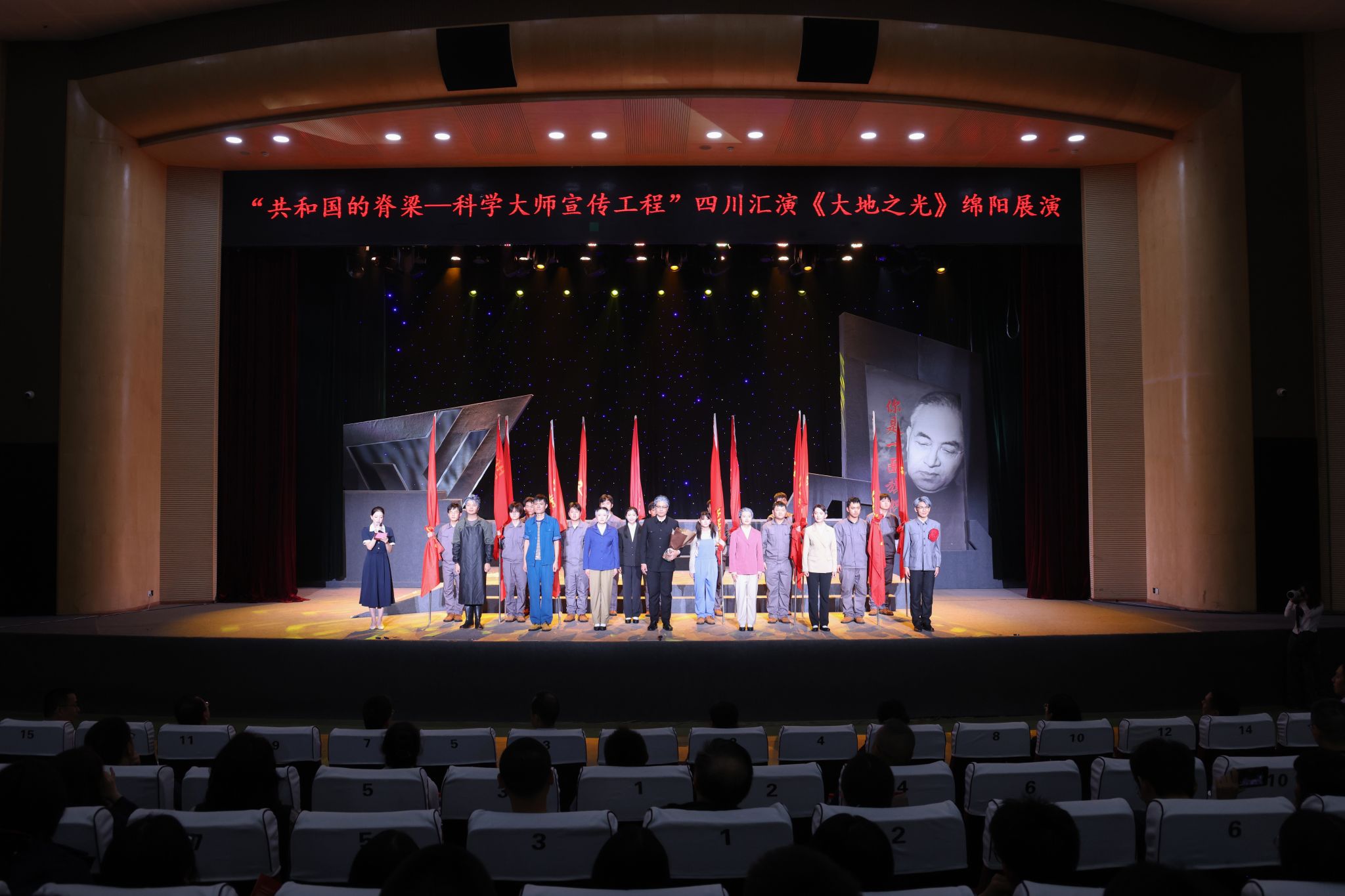10月15日晚,“共和国的脊梁——科学大师宣传工程”四川汇演《大地之光》绵阳展演在西南科技大学启幕。四川省科学技术协会党组成员、副主席辜彬,绵阳市政协副主席、民革绵阳市委会主委许小君,73882必赢网页版党委副书记王甫,西南科技大学党委常委、副校长代波,绵阳市科技工作者代表,科学家精神教育基地代表,教育工作者代表和学校师生代表800余人现场观看演出。