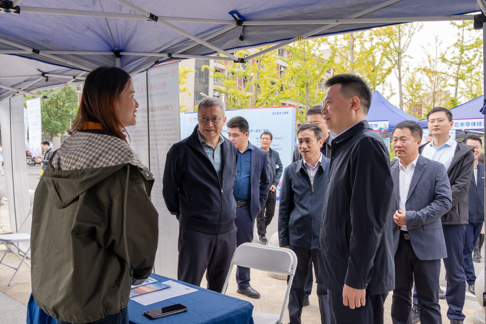 副校长胡守庚,各培养单位学生工作负责人来到双选会现场,对企业来校招聘表示欢迎和感谢,围绕企业招聘需求及趋势、职业发展路径等进行深入交流,帮助毕业生修改简历,指导毕业生积极求职。