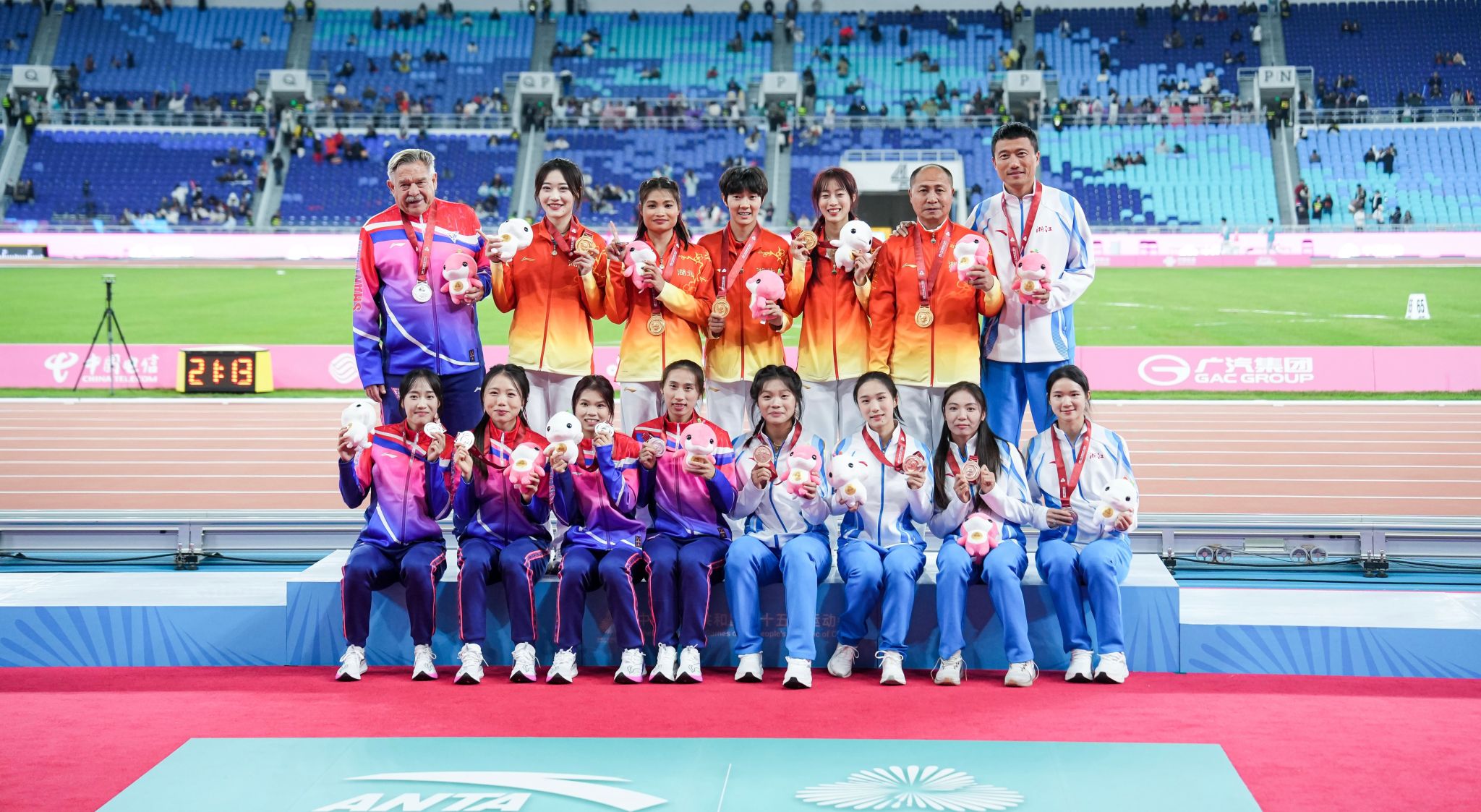 女子4×100米接力项目上,体育学院2024级本科生马成娜搭档队友徐鑫莉、陈妤颉、简茹菁组成的浙江队,以44秒06刷新队伍最佳成绩,斩获季军。