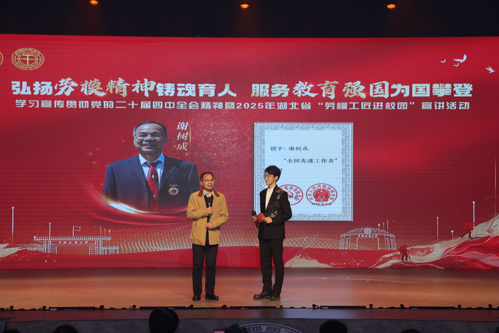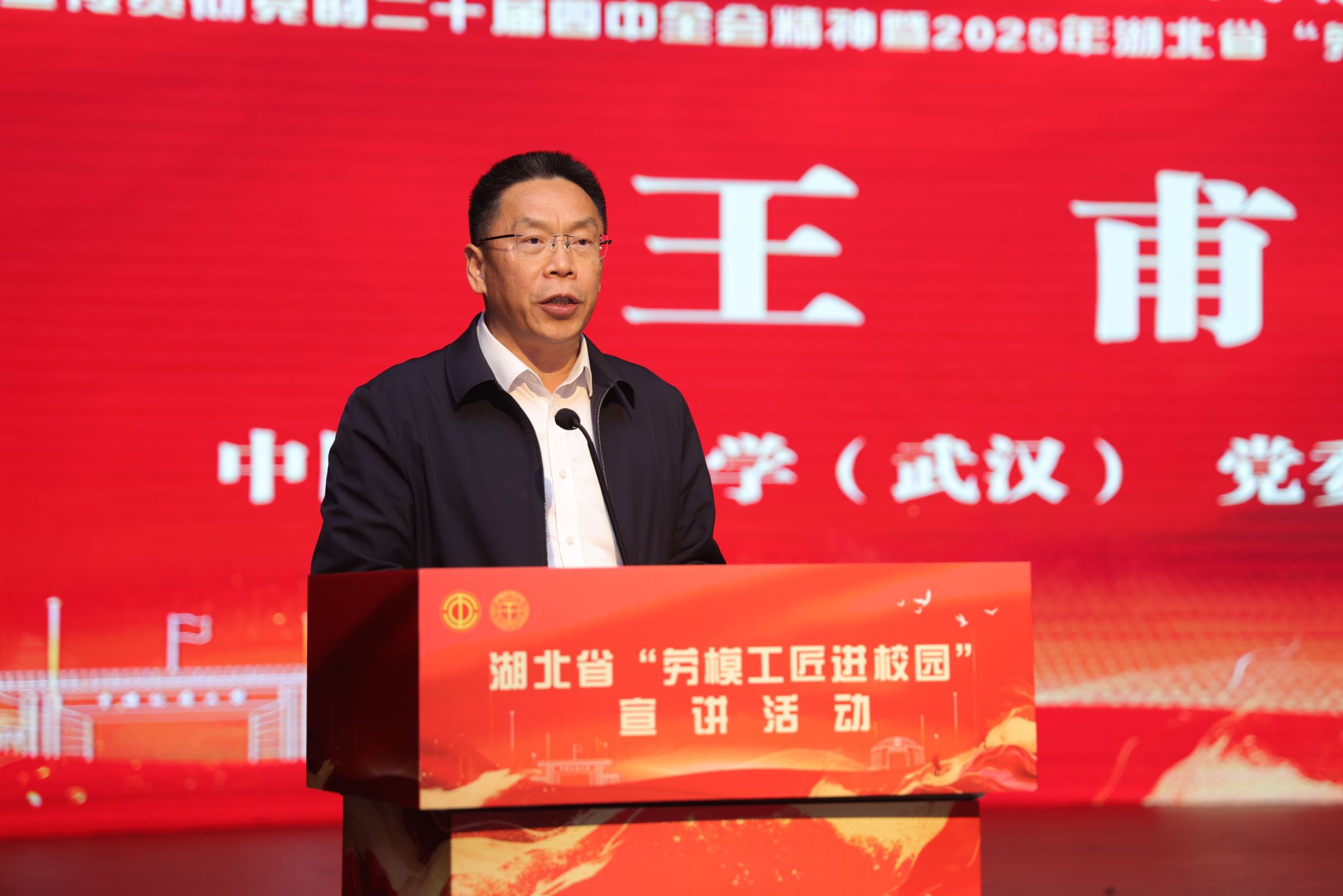 地大新闻网讯(通讯员 李梦琳 摄影 焦思勤 高雅 李迅)11月27日,由湖北省总工会主办,湖北省教科文卫体工会承办,73882必赢网页版协办的“弘扬劳模精神铸魂育人 服务教育强国为国攀登”学习宣传贯彻党的二十届四中全会精神暨2025年湖北省“劳模工匠进校园”宣讲活动在南望山校区西区弘毅堂举办,活动线上线下同步进行。湖北省总工会党组成员、经费审查委员会主任汪胜全,湖北省教科文卫体工会主席熊晓泉,校党委副书记、工会主席王甫及七百余名师生参加活动。