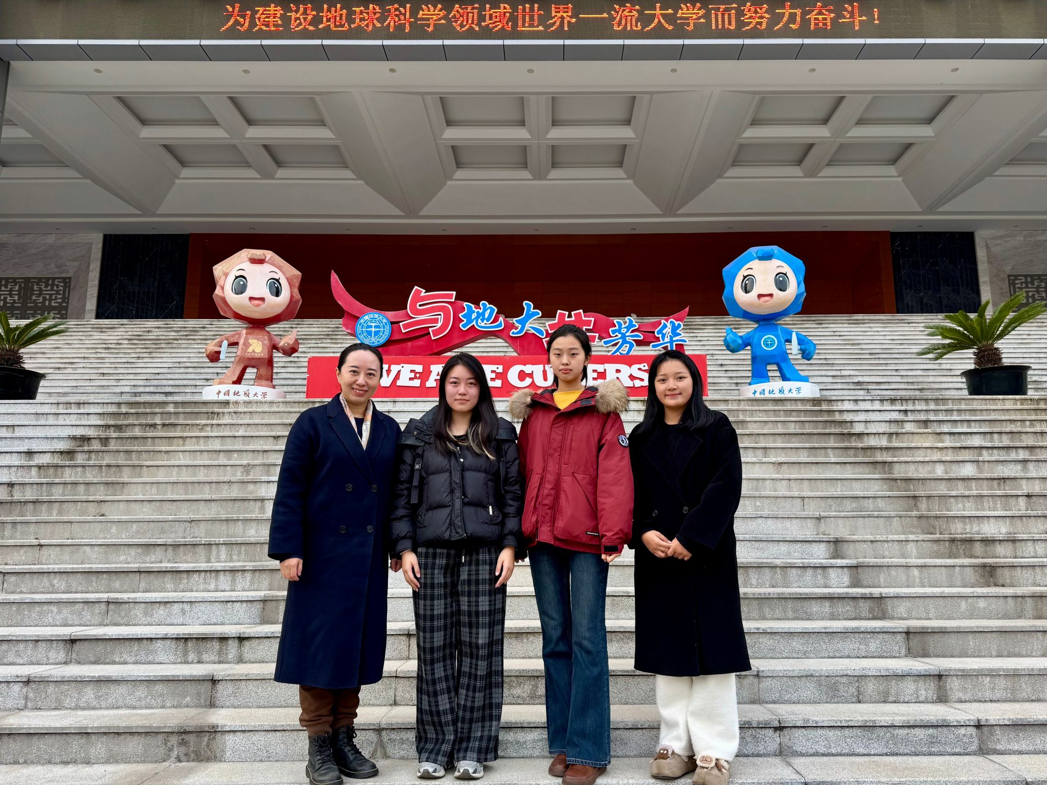 获奖学生王晨熙(左二)、孙一滋(右二)、袁春琳(右一)与指导老师姚夏晶(左一)