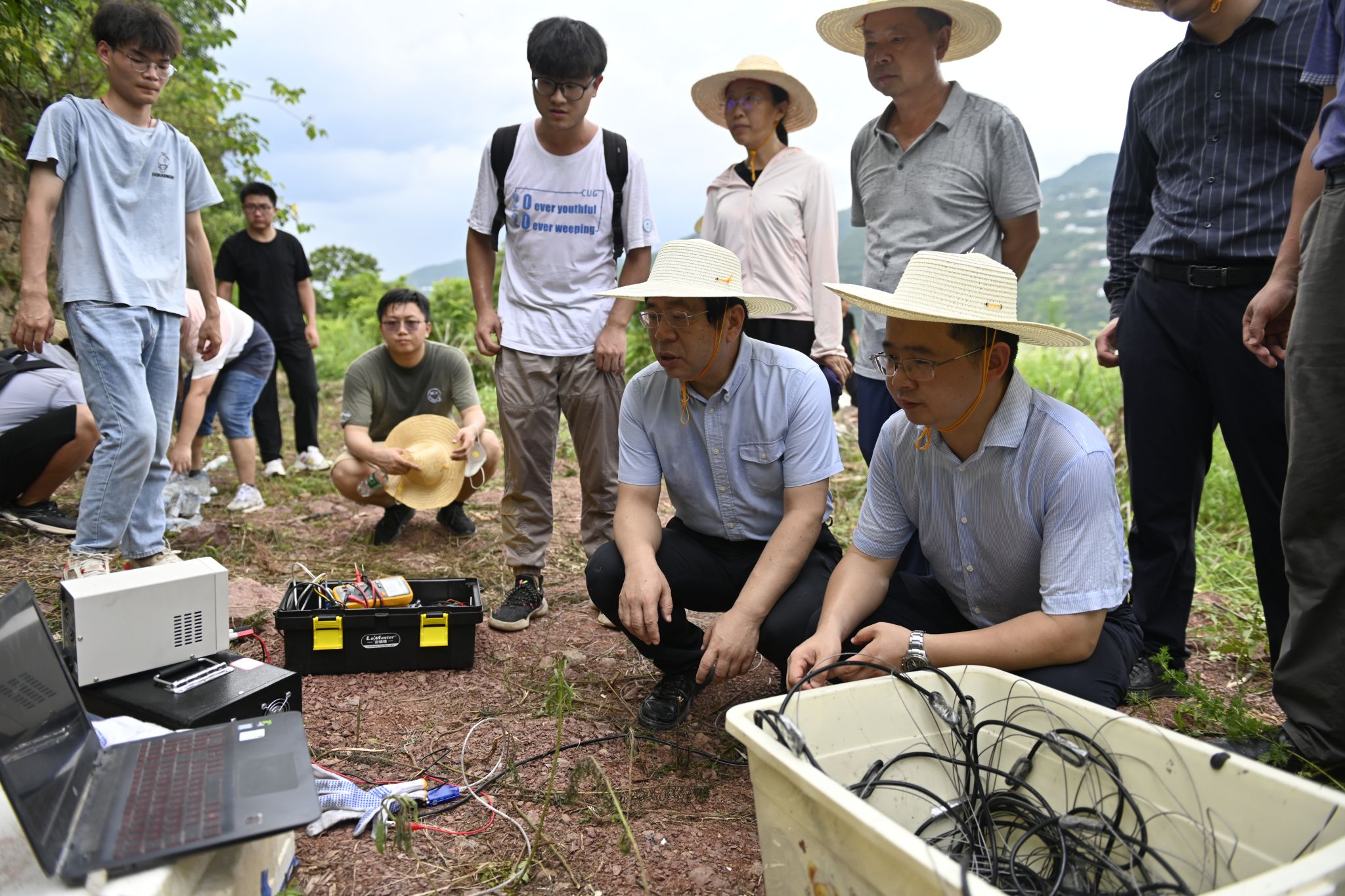 唐辉明与团队在野外开展监测工作