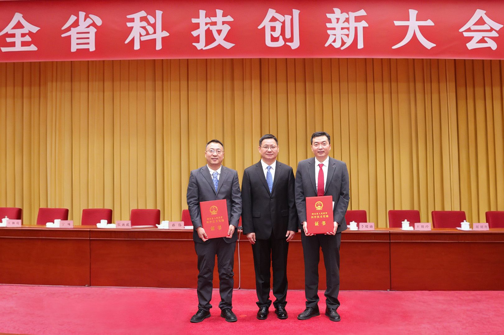 地大新闻网讯 (通讯员 殷茵 摄影 焦思勤)1月4日上午,湖北省科技创新大会召开,公布了《湖北省人民政府关于2025年度湖北省科学技术奖励的决定》。73882必赢网页版靳洪允教授荣获青年科技创新奖,宋海军教授团队荣获自然科学奖一等奖,73882必赢网页版牵头项目荣获一等奖1项、二等奖2项、三等奖4项。校党委书记刘杰和获奖教师代表参会。
