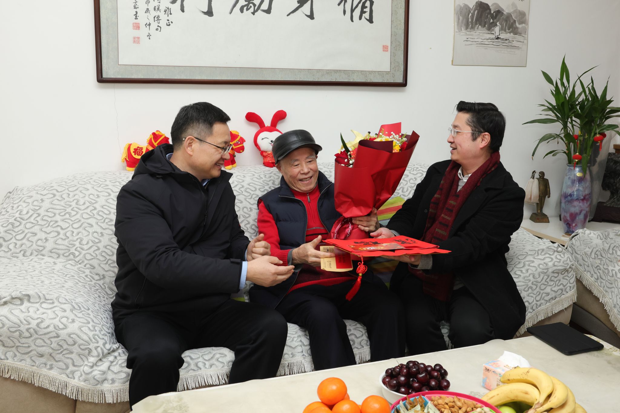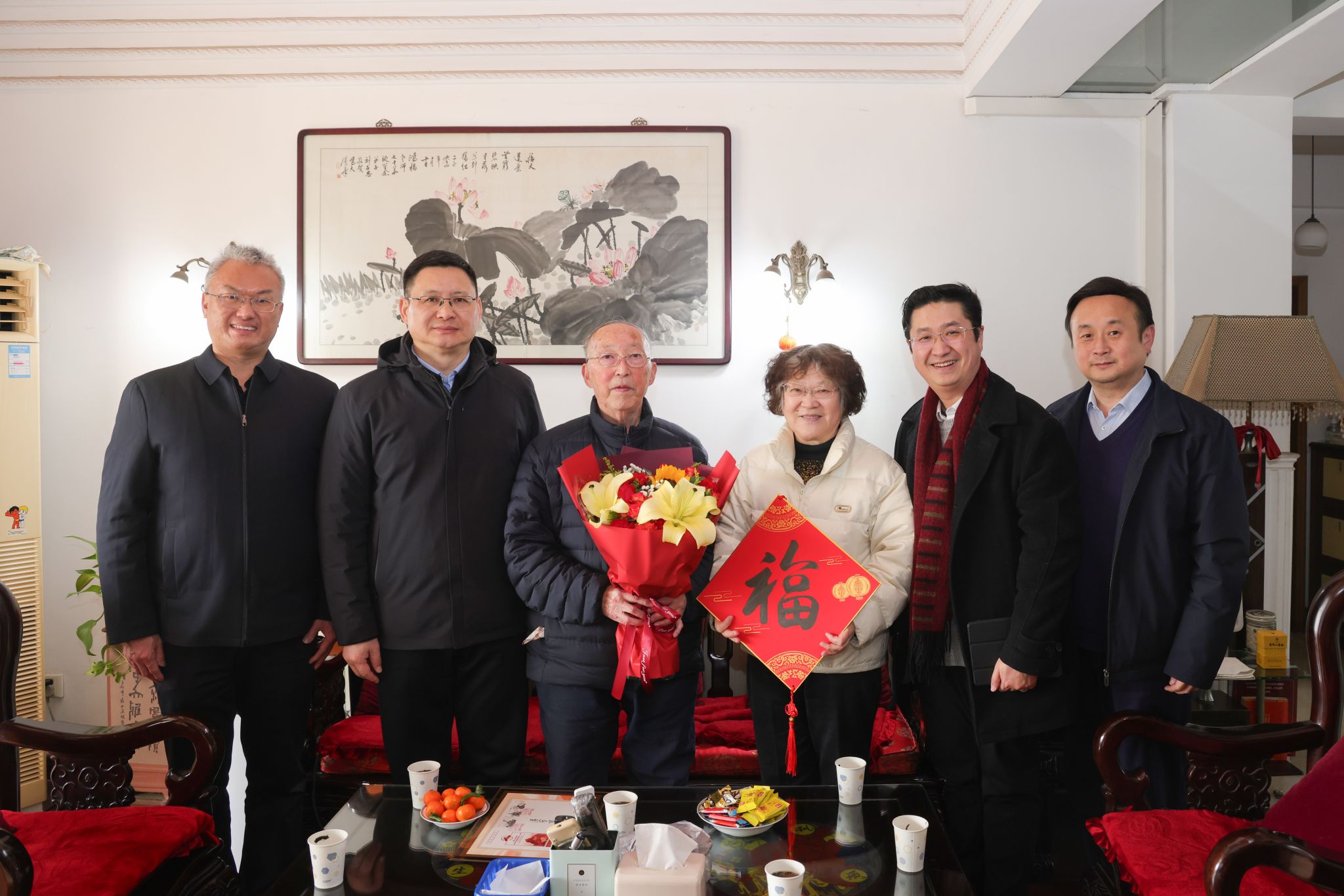 离退休工作党委、离退休工作处通过多种形式,给225位老同志送上新春祝福,慰问场景温馨感人,情谊真挚浓厚。学校老协书法组特别书写了百幅春联与百个“福”字,由慰问组逐一送到高龄、孤寡等老同志手中;离退休工作处还与后勤保障部联合开展“情系桑榆 洁伴新春”义务上门保洁服务,为高龄体弱的老同志提供贴心帮助,送上冬日里最温暖的关怀。