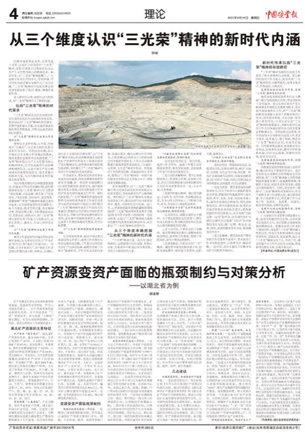 新形势新要求,以"三光荣"精神凝心聚力是地质战线改革发展最迫切的现实需求,为发展新质生产力蓄势赋能。我们要以“三光荣”精神扎实推进各项改革工作,推动地质行业向着更加科学、规范、可持续的方向发展。近几年,山西省地质勘查局和新疆地质局将《地质“三光荣”精神传承及党史学习教育》作为中层干部骨干培训的唯一思政必修课,这是以“三光荣”精神助力地勘单位新时代改革发展的鲜活样本,充分彰显了“三光荣”精神的思想伟力。