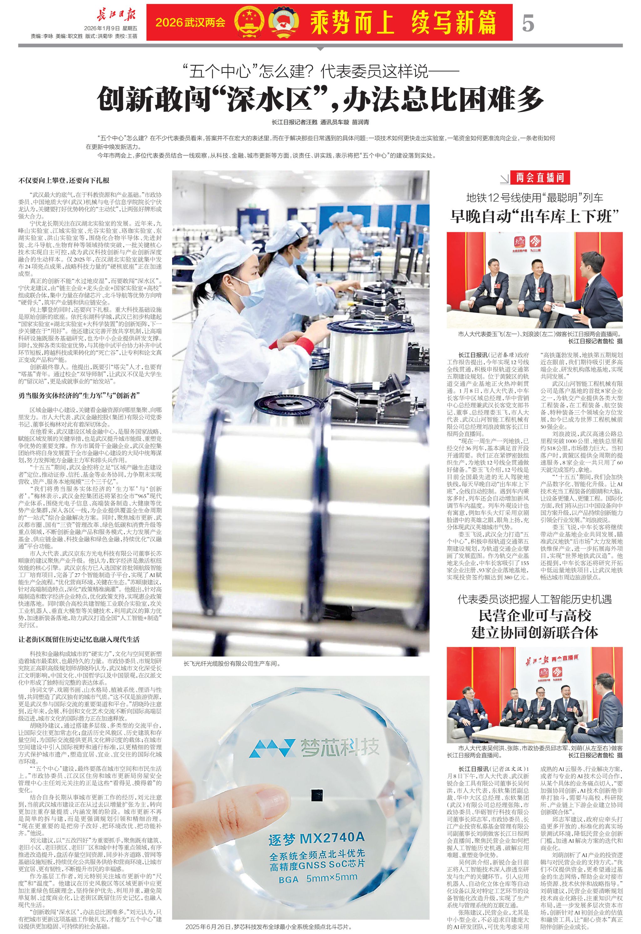 创新最终靠人。他提出,既要引“塔尖”人才,也要育“塔基”青年。通过校企“双导师制”,让武汉不仅是大学生的“留汉站”,更是成就事业的“始发站”。