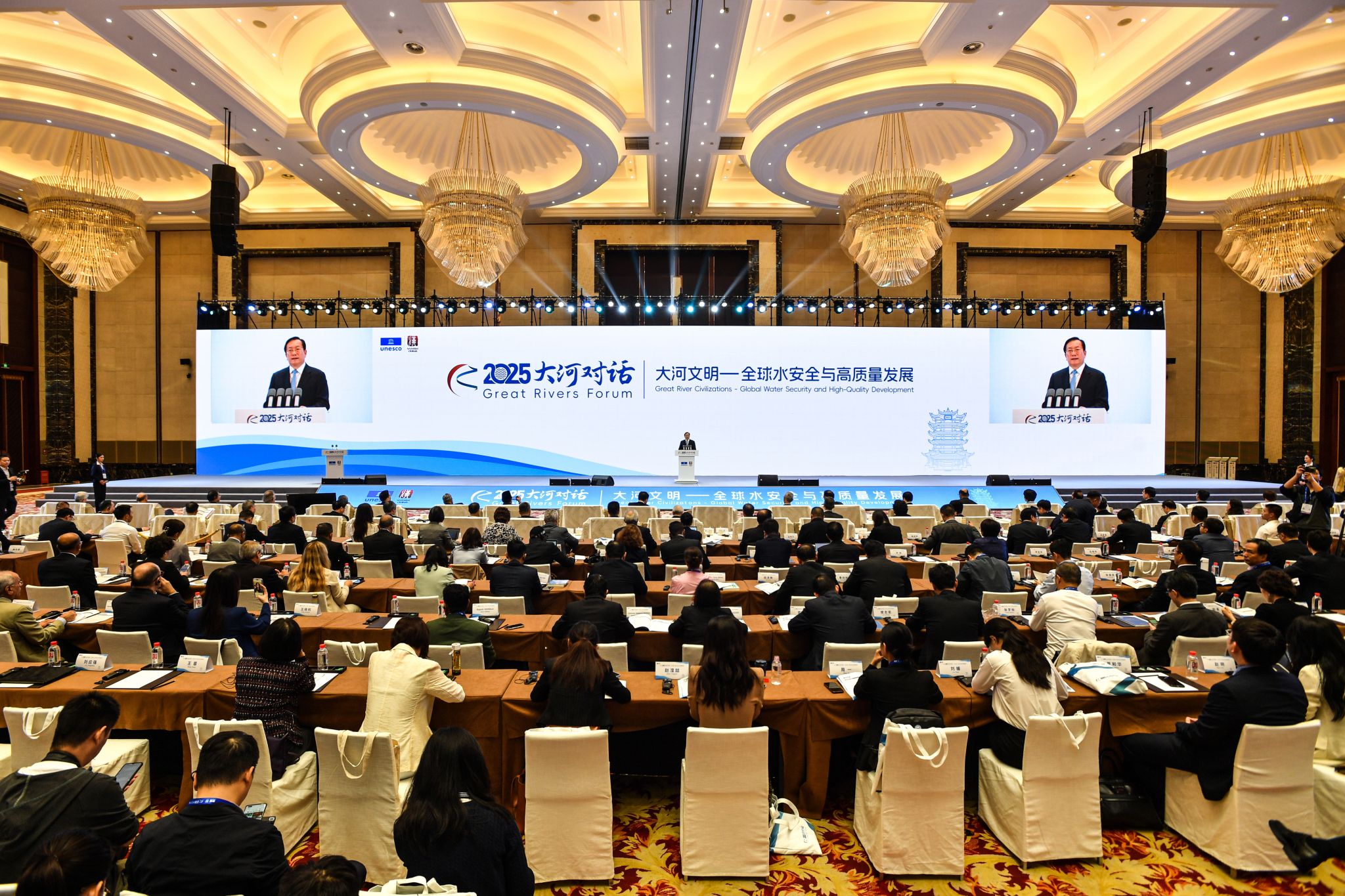 湖北省委书记、省人大常委会主任王忠林出席开幕活动并致辞。他指出,举办“大河对话”,旨在汇聚全球智力资源,应对全球共同挑战,为世界各国江河治理、文明发展提供实践方案。新华通讯社党组书记、社长傅华致辞并发布智库成果《新时代长江治理的成就启示与世界意义》。联合国教科文组织副总干事曲星,印度尼西亚驻华大使周浩黎,中国长江三峡集团党组书记、董事长刘伟平致辞。