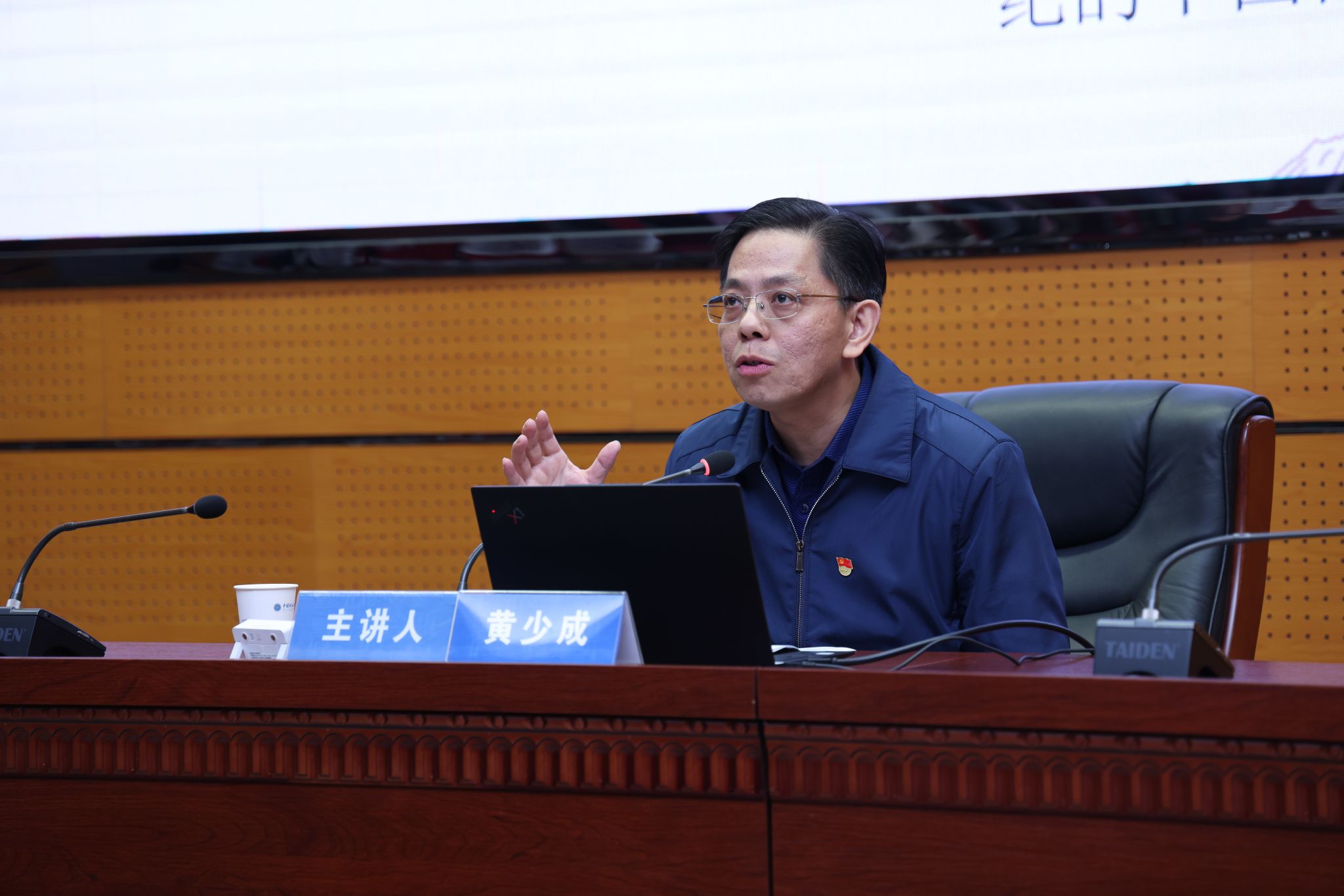 黄少成以《坚定中国特色社会主义理想信念,努力做时代的“攀登者”》为题作专题辅导报告。他带领学员从历史维度分析中国特色社会主义道路的必然选择,从发展维度讲解改革开放40余年以来中国共产党引领社会经济发展的伟大成效,从治理维度对比中西方治理差异凸显中国特色社会主义制度优势,引导学员不断坚定“四个自信”、传承红色基因、弘扬地大精神,努力做新时代的“攀登者”。