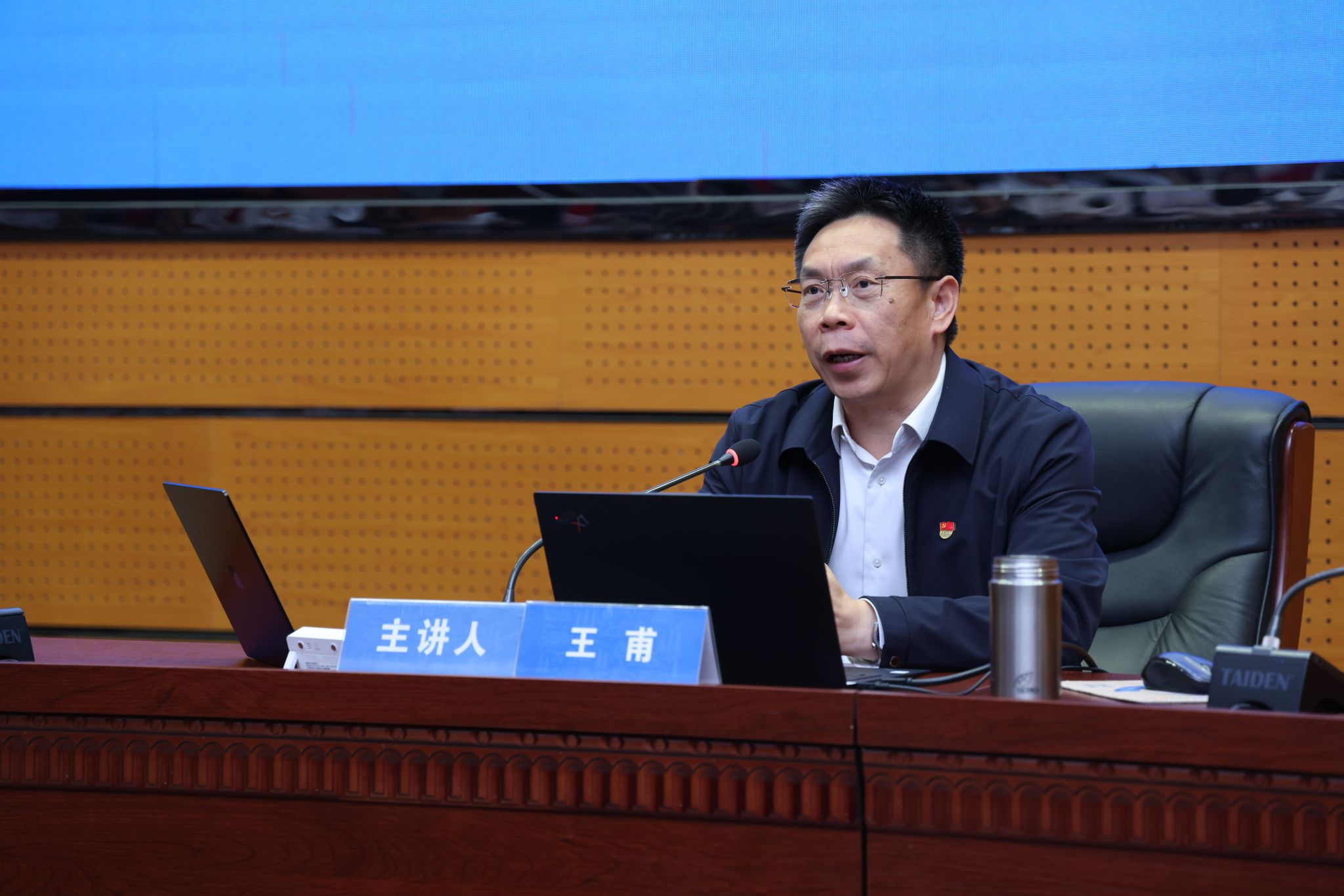 王甫以《观大势 识大局 立大志 担大任》为题作专题辅导报告。他带领学员全面回顾近现代世界历史变迁,深刻剖析当代中国发展所面临的国际国内形势,引导学员深入理解在两个大变局背景下我国高等教育的历史使命和新时代青年大学生应有的责任与担当。王甫通过解读中国特色社会主义现代化强国建设战略布局和教育、科技、人才等战略支撑作用,号召广大青年学生胸怀“国之大者”、立志民族复兴,自觉将个人发展的“小逻辑”融入国家发展的“大逻辑”,以奋进之姿助力中华民族伟大复兴。