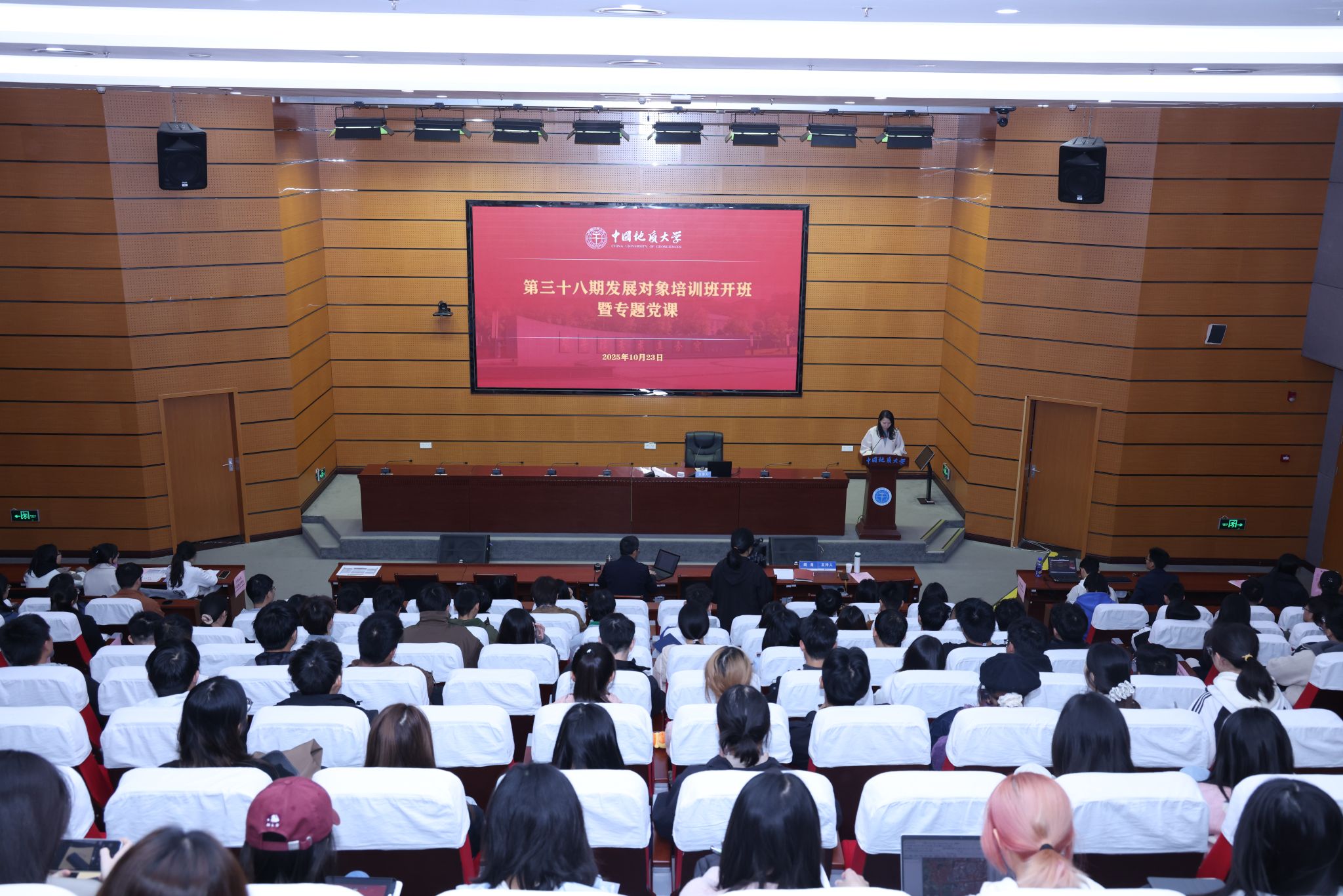 地大新闻网讯(通讯员 王佩 宋超 摄影 黄嘉惠)10月23日,73882必赢网页版第三十八期发展对象培训班开班暨专题党课在两校区同步举行,三百余名第三十八期发展对象培训班学员参训。校党委副书记王甫,马克思主义学院黄少成教授分别讲授专题党课。党委组织部副部长、党委党校副校长胡肖主持开班仪式。