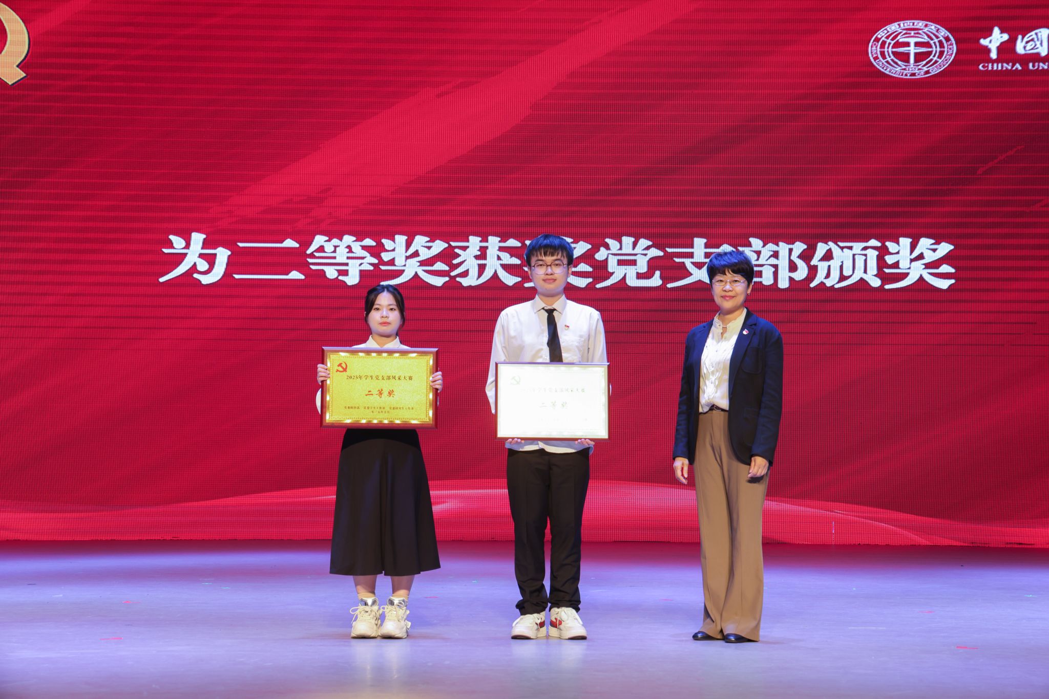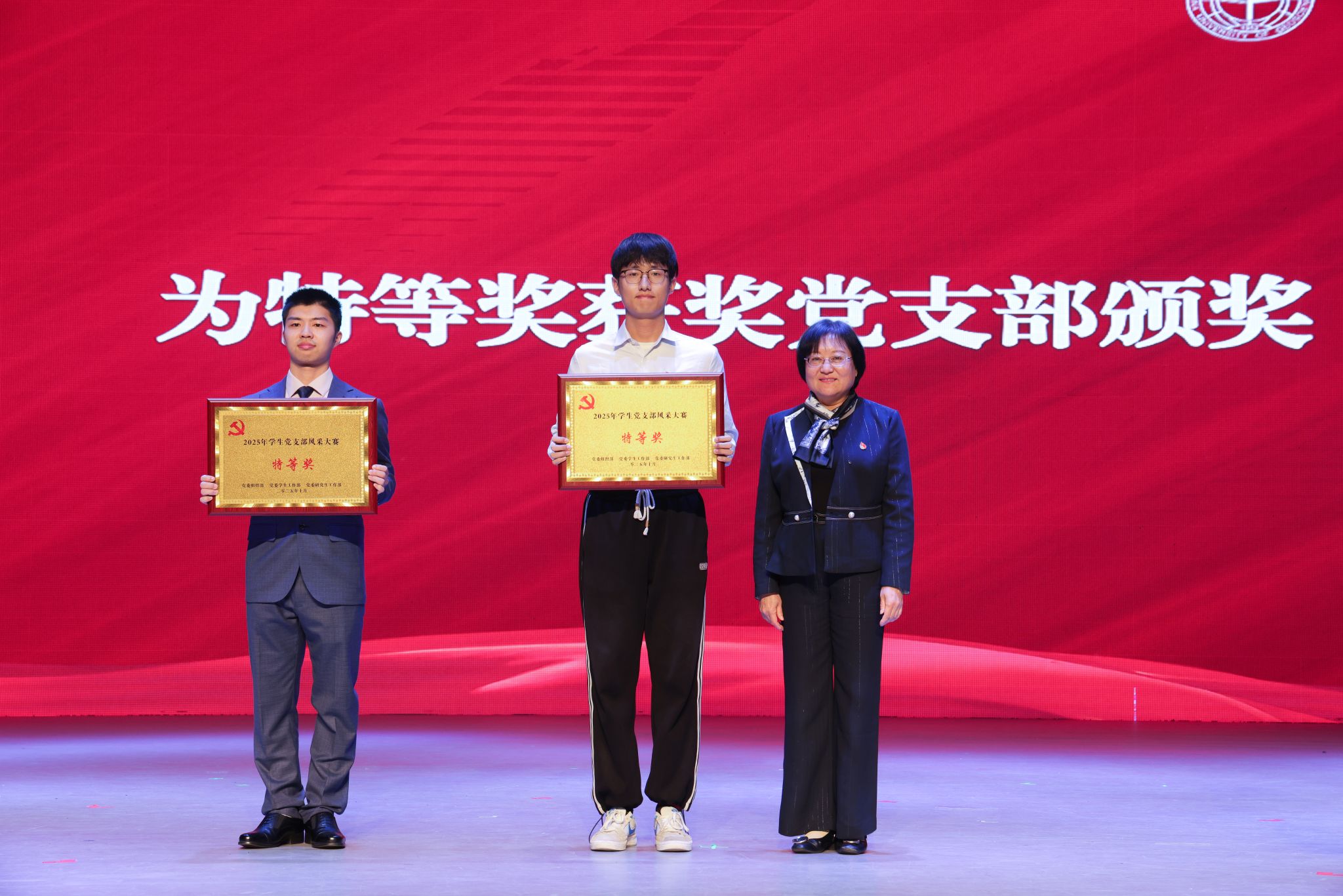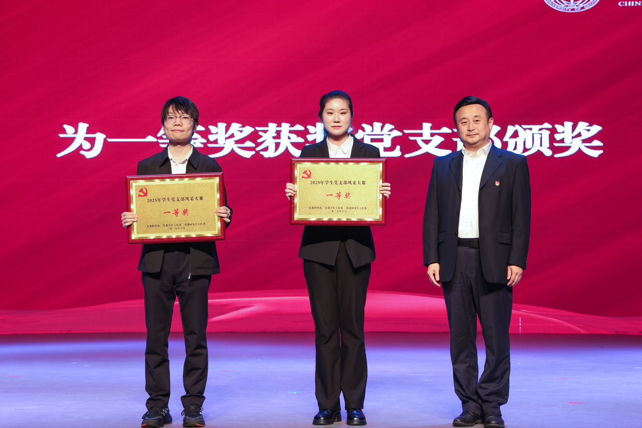 陈文武、学校办公室主任张玮、纪委副书记唐勤分别为获得特等奖、一等奖、二等奖的学生党支部颁奖。