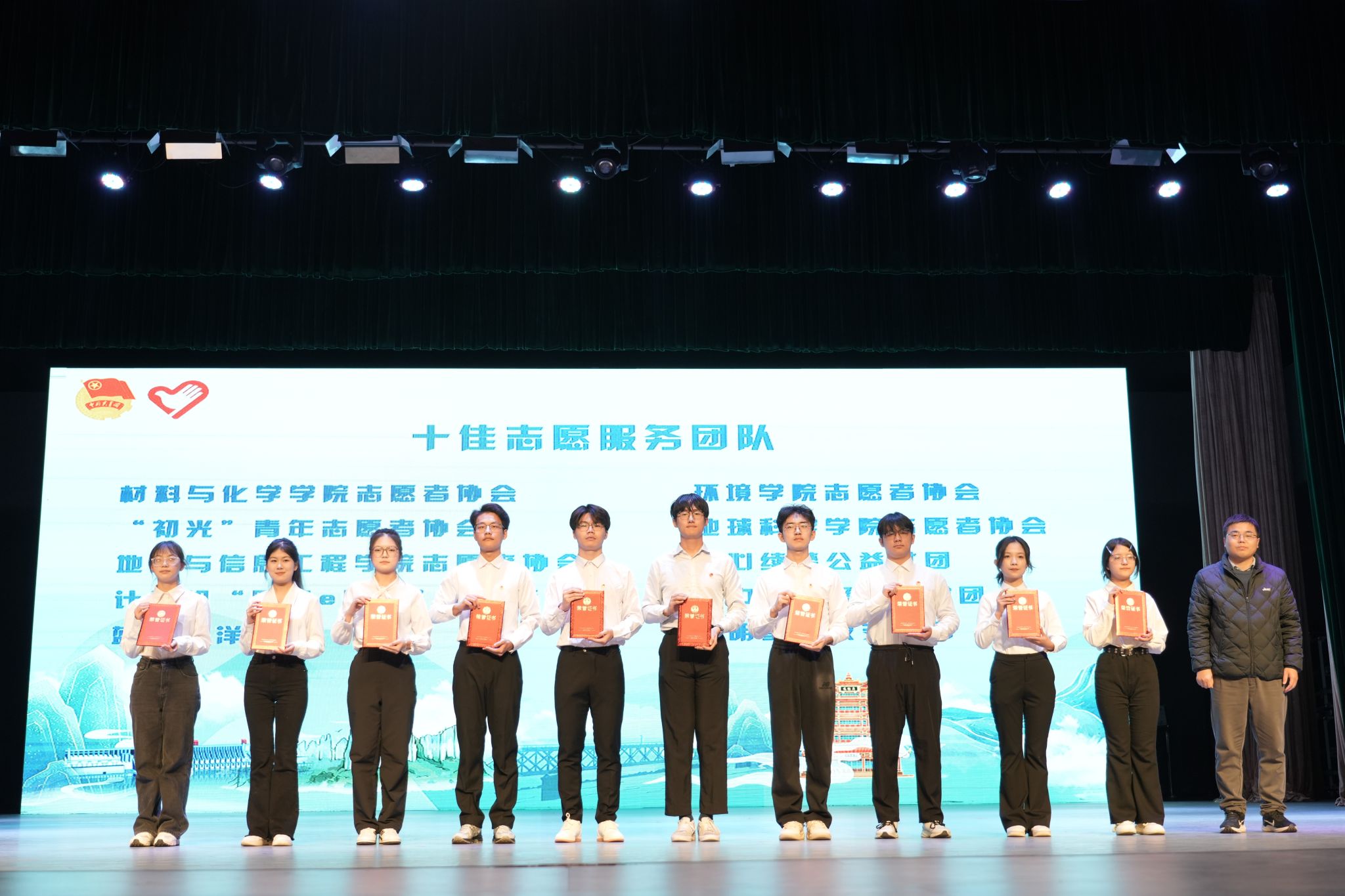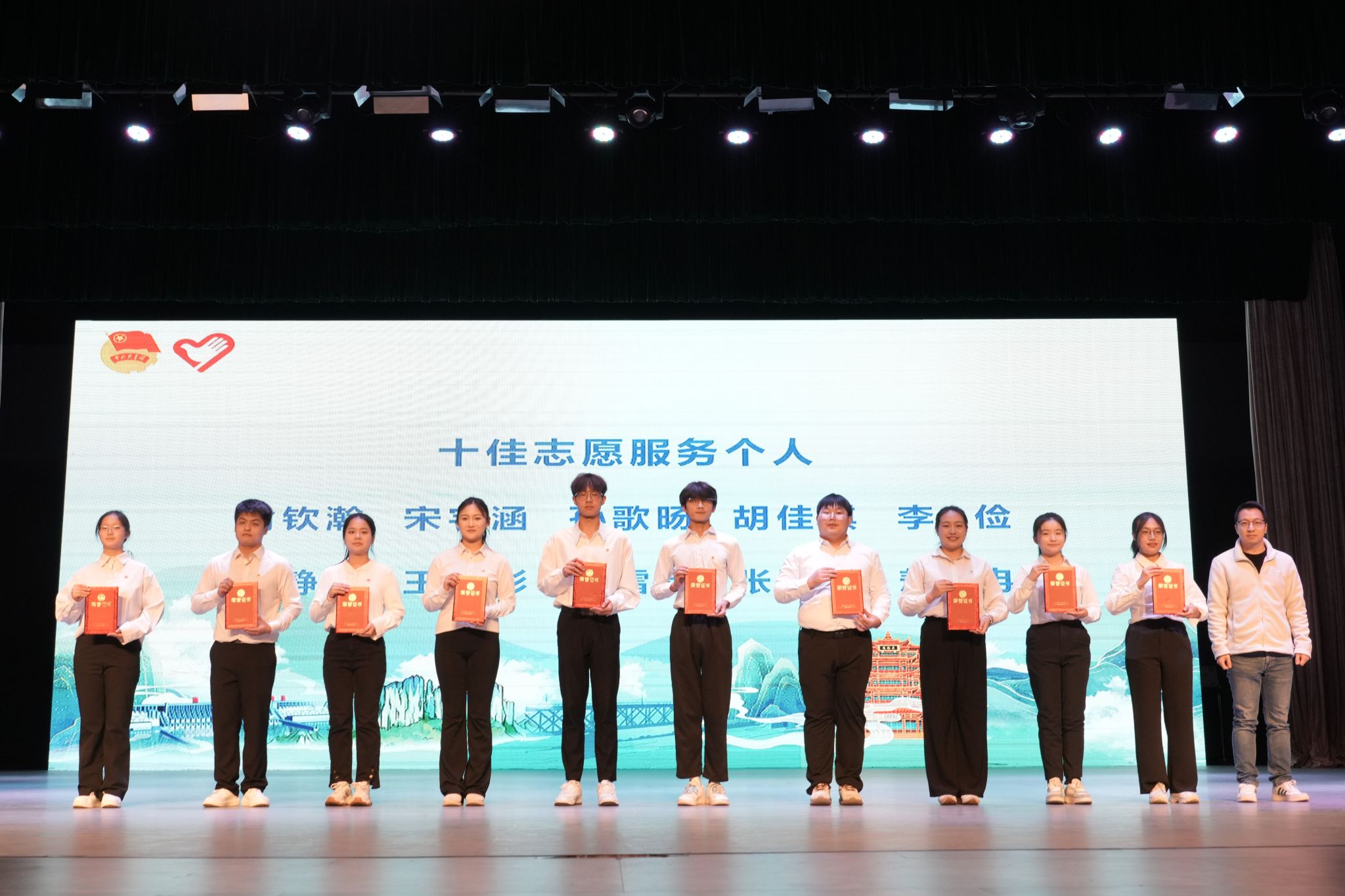 现场对荣获“十佳志愿服务个人”“十佳志愿服务团队”“志愿服务项目大赛优秀团队”的代表进行了表彰,体现了新时代志愿服务工作在立德树人中的育人作用。