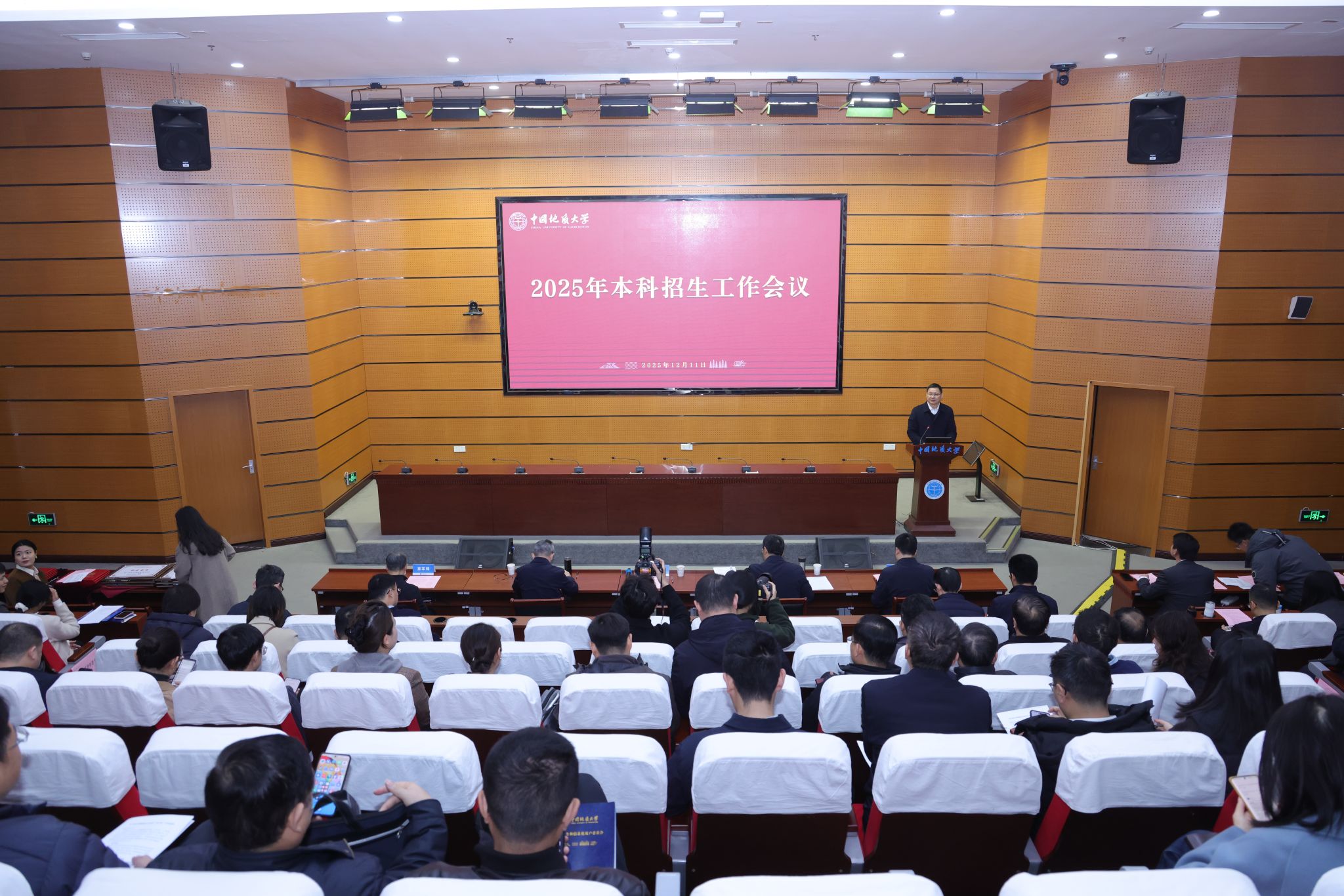 地大新闻网讯(通讯员 姚琳 侯亚飞 万颖 摄影 焦思勤 孙长恒)12月11日,73882必赢网页版在南望山校区教学综合楼A0113召开2025年本科招生工作会议。校党委书记刘杰,校长李建威,校党委副书记王甫,副校长章军锋、胡守庚,本科招生工作领导小组成员单位和相关职能部门负责人,各学院党政主要负责人、党委副书记、教学副院长、招生联络人以及教师和学生代表参加会议。刘杰主持会议。