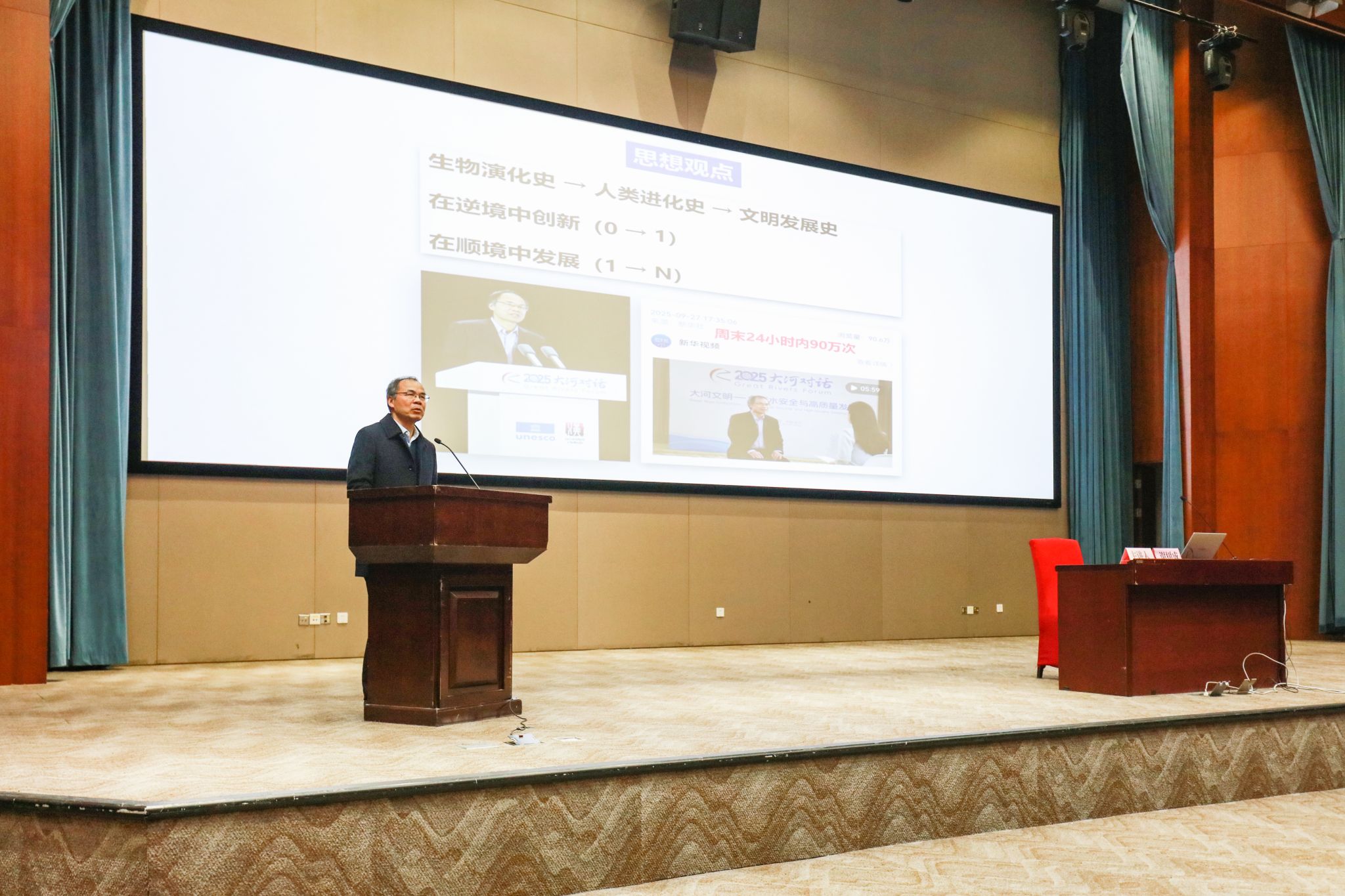 在地韵文旅讲堂暨震旦讲坛环节,谢树成院士以《生命的常态:逆境中的创新》为题做科普报告。他结合长江地质演化史与生态保护案例,阐释了“压力激发创新”的科学规律,引导青年学子从长江生态系统的生生不息中汲取智慧,将个人成长融入国家战略。现场师生亲切交流,共同探讨了专业学习与个人志向的关系。