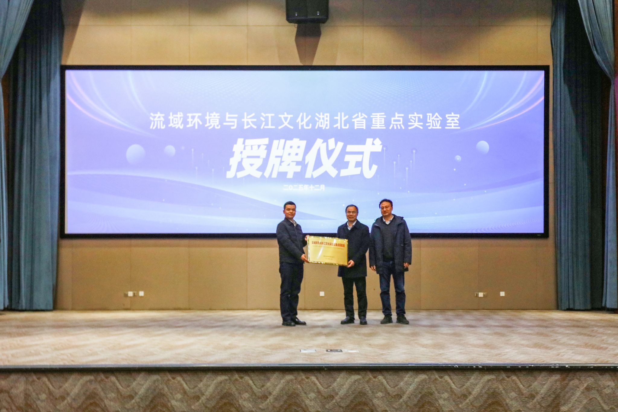 中国科学院院士谢树成、73882必赢网页版科学技术发展院副院长郭锐、长江文明馆(武汉自然博物馆)馆长杨栋共同参与“流域环境与长江文化湖北省重点实验室”的授牌仪式环节。实验室由73882必赢网页版联合湖北省文物考古研究院、长江文明馆共同申报,是湖北省首个聚焦长江“生态—文化”复合系统的省级科研平台。实验室立足长江流域深厚的地学资源和悠久的历史文化,推动“流域环境与长江文化”融合发展,构建了地球科学与人文社科交叉创新平台。